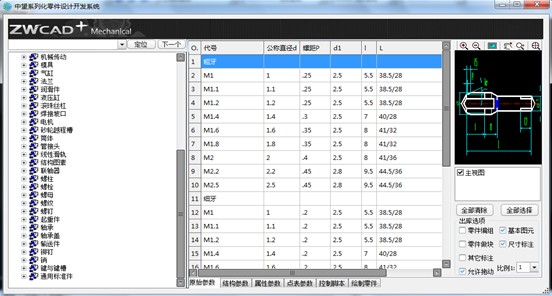 1、零件庫涵蓋了45個大類,2500多種零件,所有零件包括的規格也都一一列入,根據最新的國標標準逐步更新。