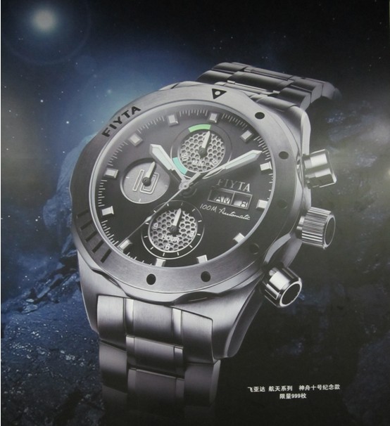 作為一家具有航空工業背景的國家級高新技術企業,飛亞達于2002年就參與了我國第一塊航天手表的設計與制造,爾后更是出色地完成了神五到神九等神舟系列飛船航天表的設計及裝配任務。2013年夏,伴隨著神十成功飛天,飛亞達推出的神舟十號紀念款航天系列手表,向中國航天事業致敬。