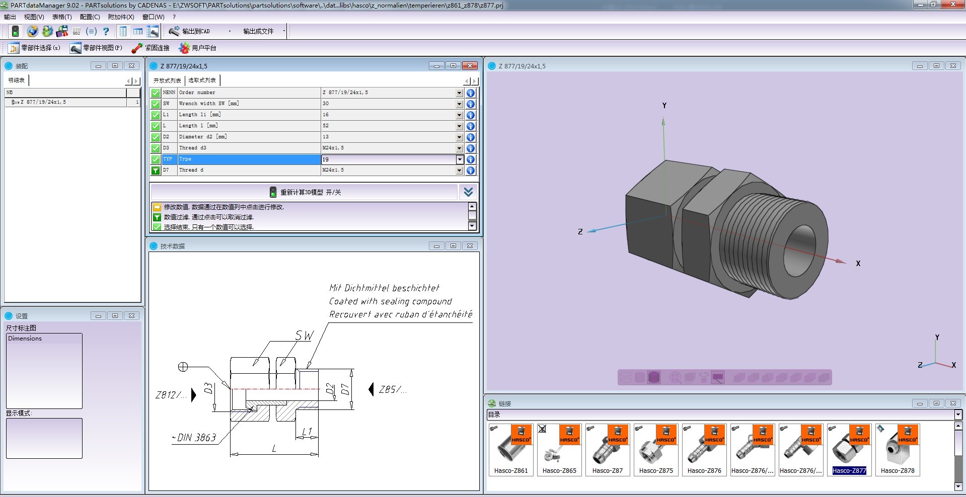 2.完善的標準件庫 集成PartSolutionsTM零件庫,提供多國標準零件和主流廠商標準件,如GB、ANSI、JIS、DME、HASCO、MISUMI等。
