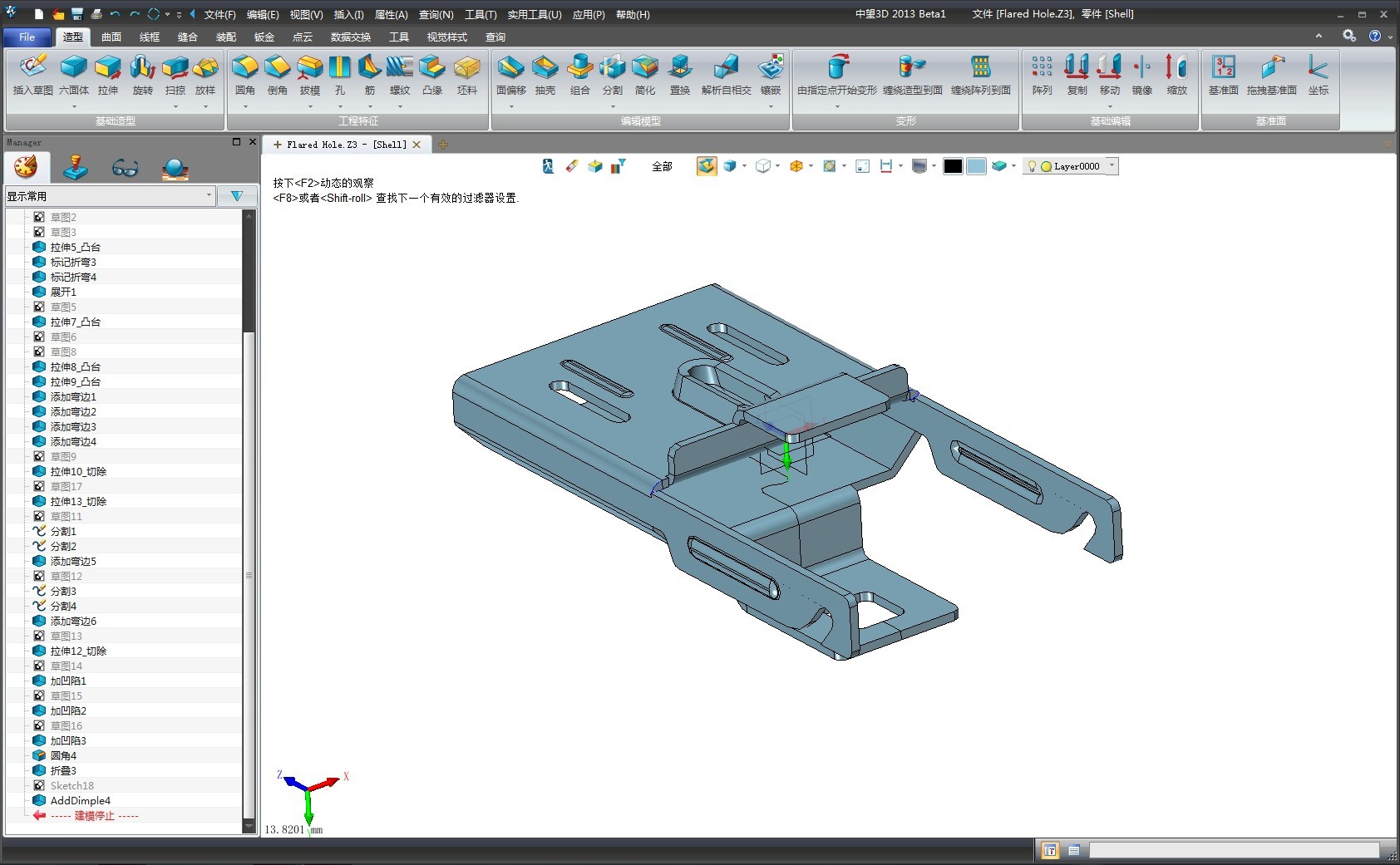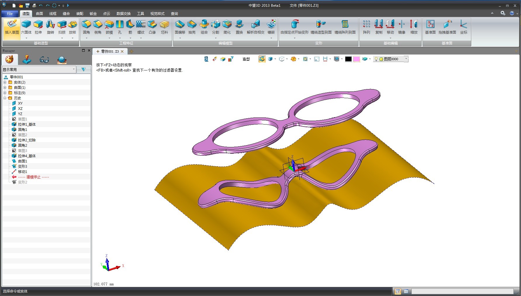 中望3D是一款高性價比的CAD/CAM軟件,能提供從設計到加工的一體化解決方案,在機械制造、模具設計與加工、消費品等領域有廣泛的應用。中望3D2013極大簡化了操作流程,優化了Ribbon界面和操作體驗,歷史管理器更加智能,具有超強的數據兼容性,并具有全流程塑膠模具解決方案以及智能化2—5軸CAM加工。中望3D2013功能更強大,操作方式更加人性化,用戶體驗也有了顯著提升。