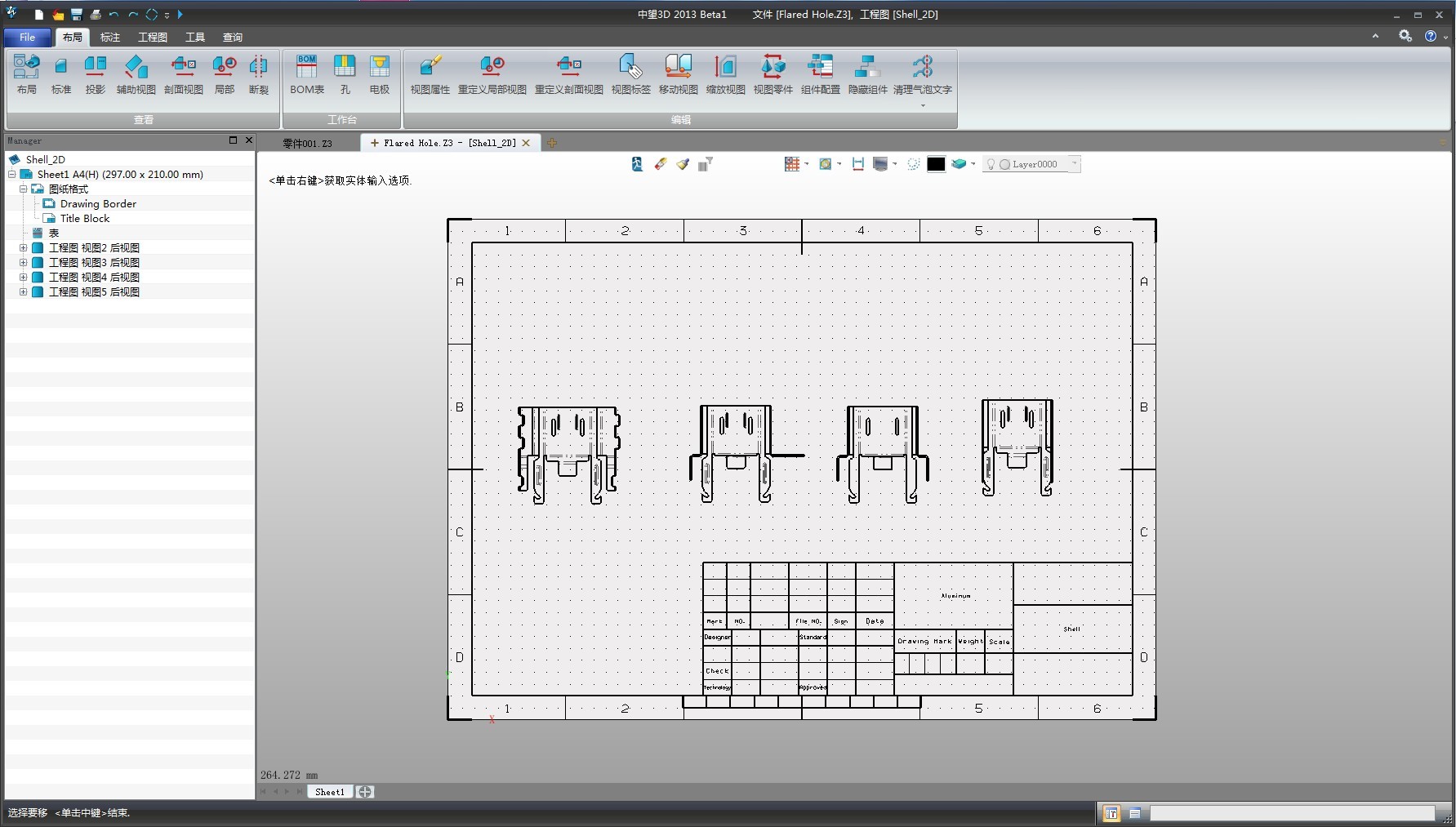1.支持多種標準的圖紙 中望3D支持GB、ANSI、JIS等多國工程圖標準,其自身自帶標準圖紙模板,能夠通過編輯、增加內容而成為企業自己的標準圖紙。