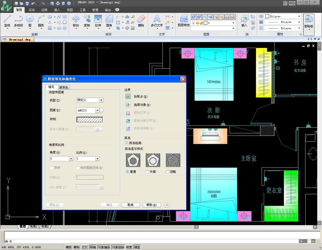 填充 擁有豐富的填充圖案供用戶選擇,可自行定義新的圖案樣式,保存在填充文件中供調用。中望CAD+除了支持普通填充功能,還支持漸變填充,能夠使圖紙更具可讀性。
