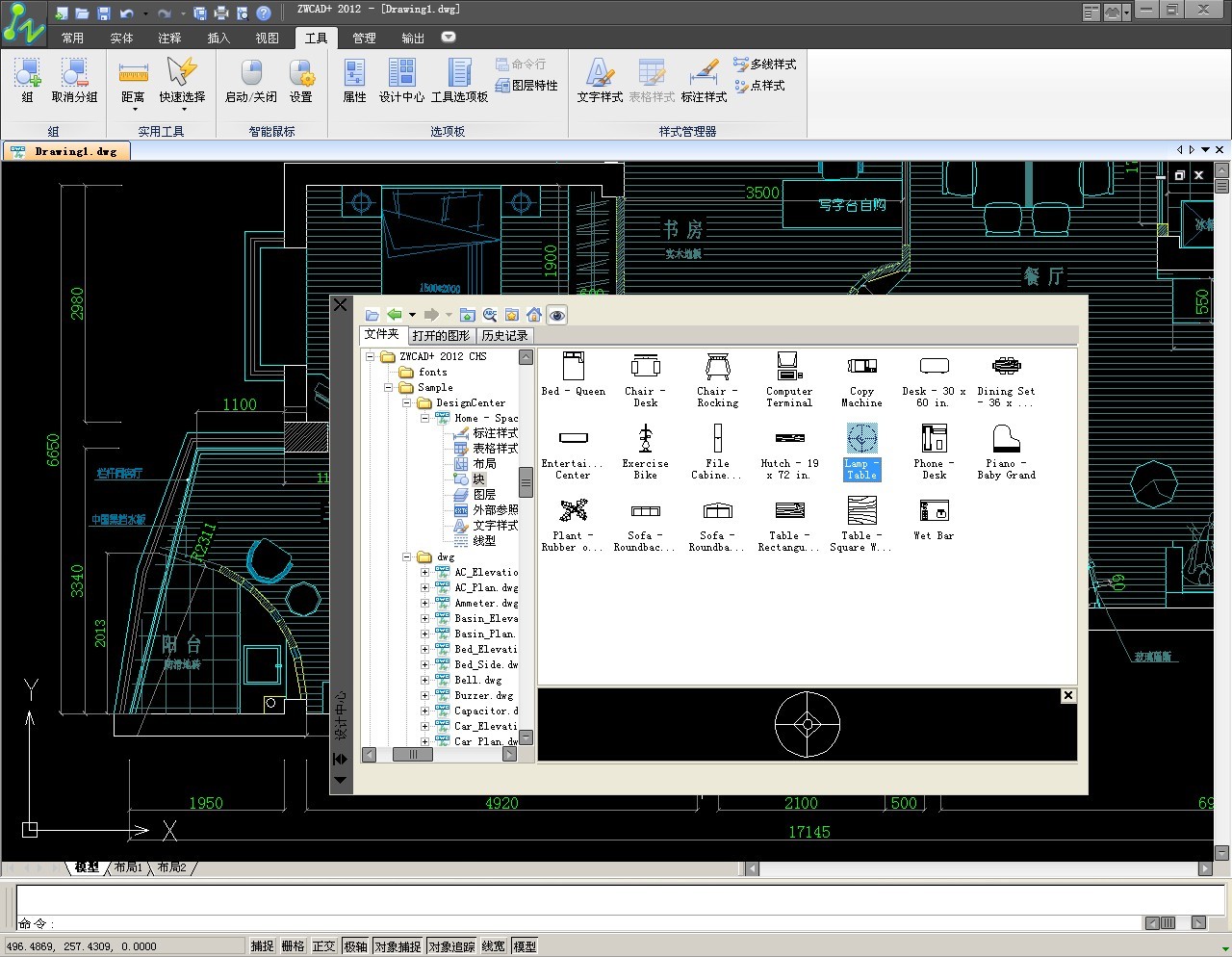 設計中心 通過中望CAD+設計中心,用戶可以組織對圖形、塊、圖案填充和其他圖形內容的訪問,還可以將源圖形中的內容如塊和圖層,拖拽到當前圖形中,無論源圖形是位于用戶的計算機或網絡位置。