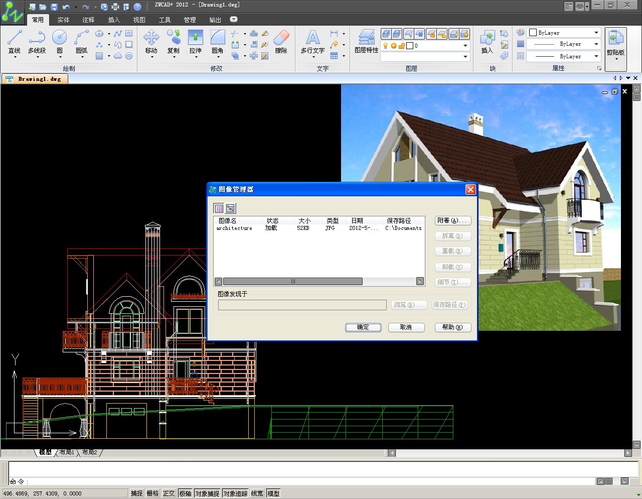 外部文件參照 圖形文件上可以插入其它的圖紙或光柵圖像文件。附著后,就可以像塊一樣將其多次重新附著。插入的圖像有自己的對比度、透明度、圖像質量以及圖像邊框的可見性。