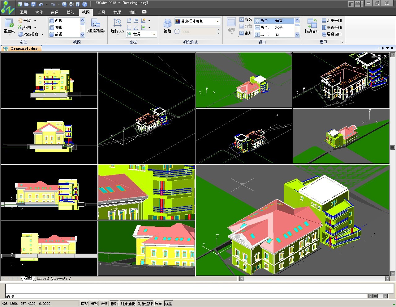 視口 布局和模型空間都可以建立多個視口,且視口的觀察角度和視覺樣式都可以獨立設置,該功能在三維設計時更為方便。