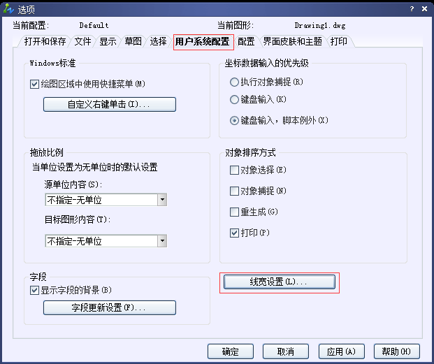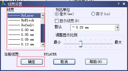 工具——選項——用戶系統配置——線寬設置——選擇需要的線寬——確定,如下圖所示