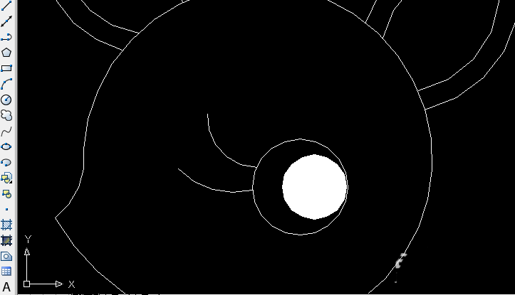 5、在大圓里面畫兩個小圓,將最小的一個填充顏色,再畫兩段圓弧為眼睫毛,圖案填充在“繪圖”選項中的“圖案填充”命令。如圖所示