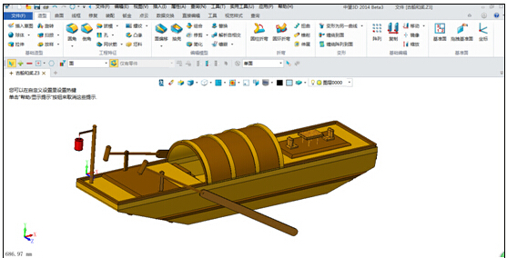 正所謂寄蜉蝣于天地,渺滄海之一粟。人生苦短,何不帶著自己的古船暢享于夢境中……作為一名即將走出校門的三維CAD設計師妹子,每天過著快節奏的生活,我夢想著能夠駕駛一條小船,漂浮在江河里,與友人對酒當歌,好不快活!然而理想總與現實相違背,那就只好繪制出古船,寄希望于虛擬環境里吧,這就是我繪制該古船的原因了。因為需要快速的建模功能,因此我選用三維設計軟件中望3D進行CAD建模設計,下面是小女子的設計技巧分享:
