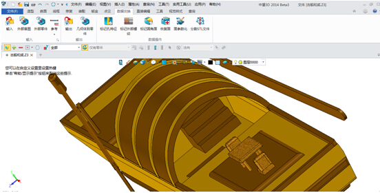 介紹完我的古船創意后,下面講講如何進行古船的建模設計,但由于部件較多,大多基本都要用到建模功能,我就選出有代表性的船槳為例,為大家講解一下在中望3D軟件中是如何進行快速的三維CAD建模: