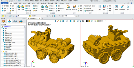 目前國內反恐勢力日益猖獗,每每看到警方因路面障礙、恐怖勢力武器配備強大而無法及時完成任務,我都痛心不已。用三維設計軟件設計出一款具備強大火力而又靈活方便的警用突擊車,是我一直思考創作的素材。在設計過程中,如何快速三維建模是一大難題。因此我選擇在快速建模有明顯優勢的三維CAD軟件中望3D作為全程的設計工具,下面我為大家簡單描述突擊車的建模設計過程: