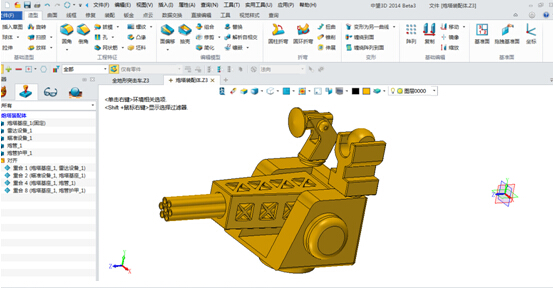 由于突擊車裝配件較多,本文不能一一闡述設計過程,我將選擇有代表性的炮管護甲為例,展示用中望3D快速建模的技巧。