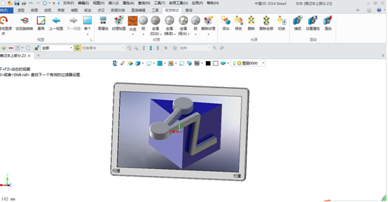 此時,筆記本底部已基本完成建模,大家可以參照圖紙中給出的提示完成具體工作。另外,我們可以添加有立體感的裝飾,在筆記本屏幕上貼圖,這可使筆記本的外觀更漂亮一點。選擇視覺樣式中的紋理貼圖命令,中望3D會自動跳出圖片文件選擇窗口,你可根據自己喜好選擇圖片,然后設置好圖片、長度、寬度和位置等,使其占滿整個屏幕。完成后的效果如下圖所示為: