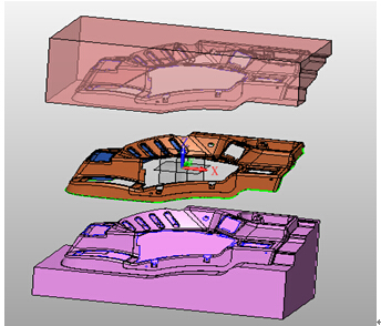 4.對產品進行“分離”,析出上下模型腔面,為模具分型面做準備: