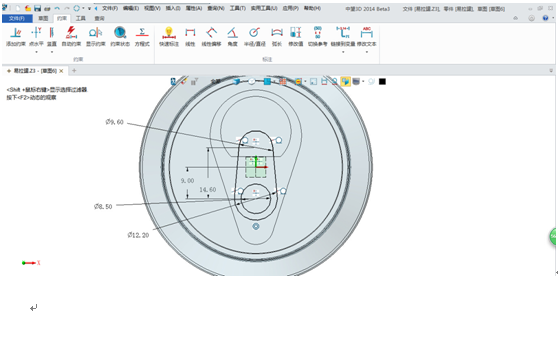 第三步,拉環(huán)繪制。選擇可樂罐頂面,插入草圖,繪制拉環(huán)草圖,具體尺寸如下圖所示: